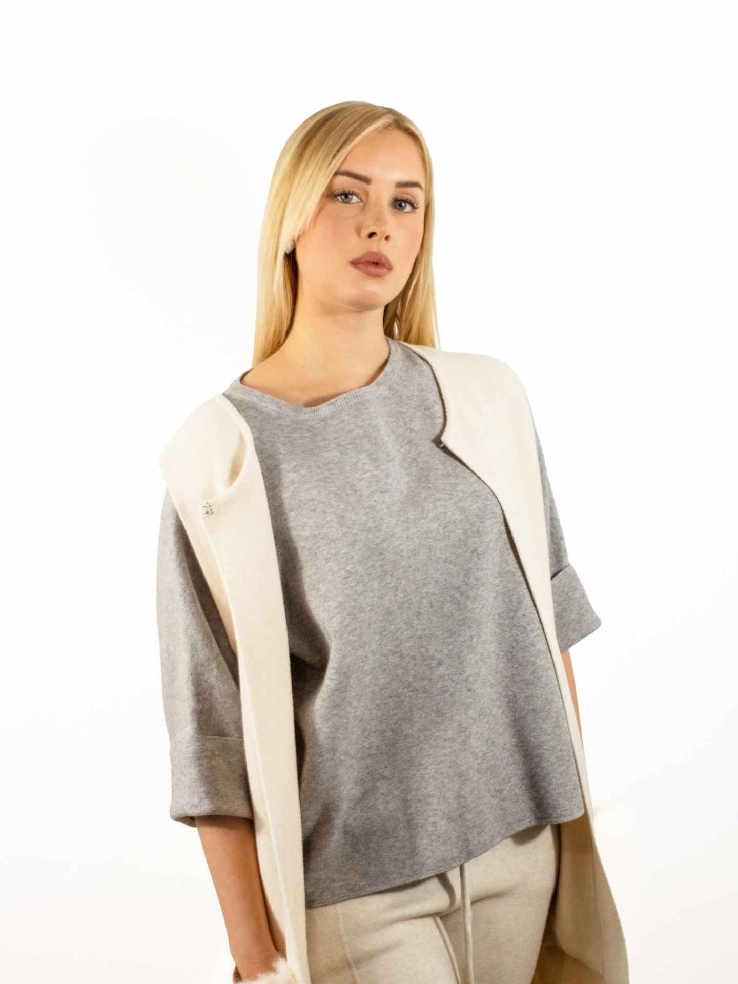 Maglione grigio leggero con maniche a 3/4