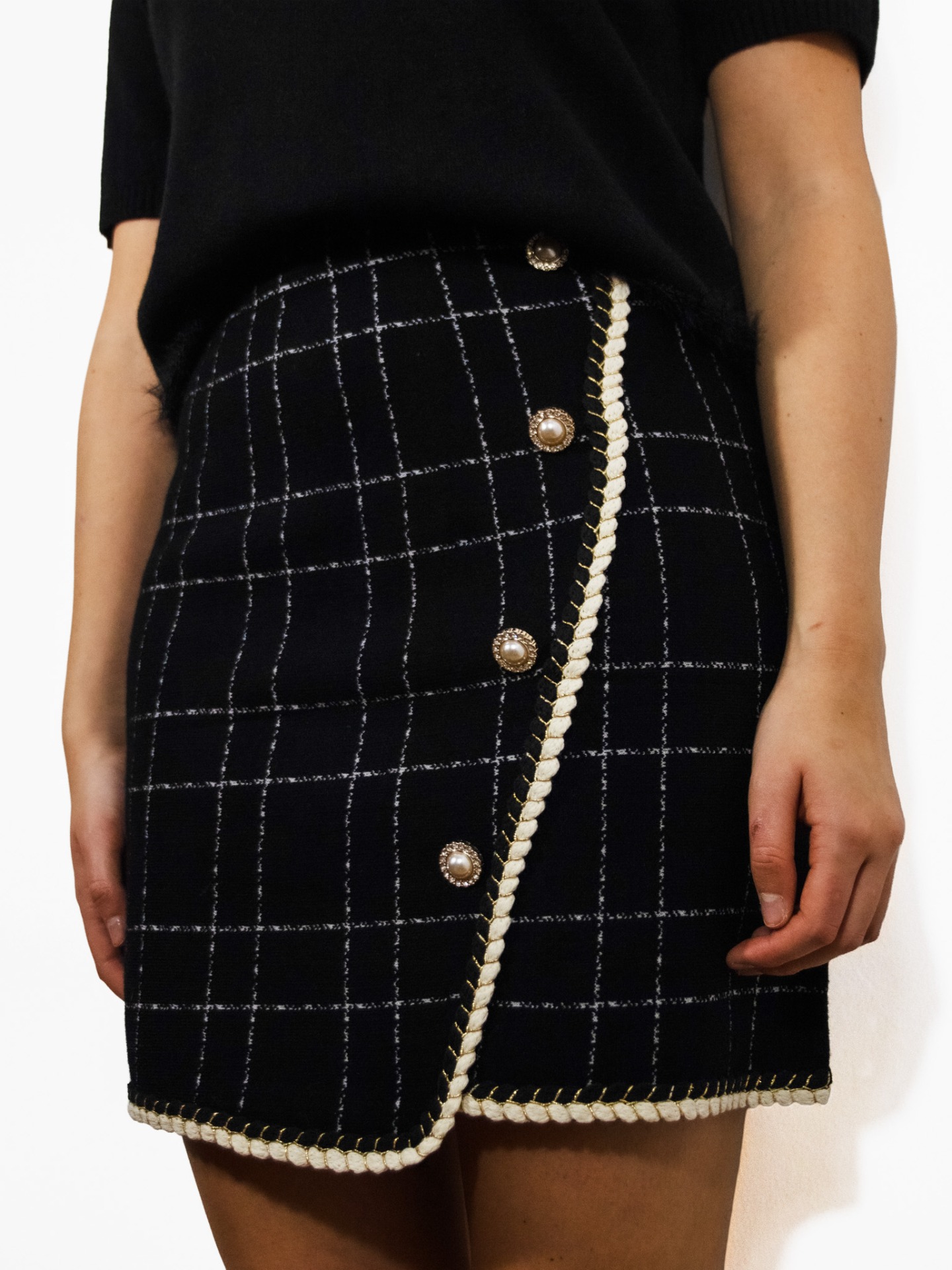 Gonna nera con bottoni ai lati